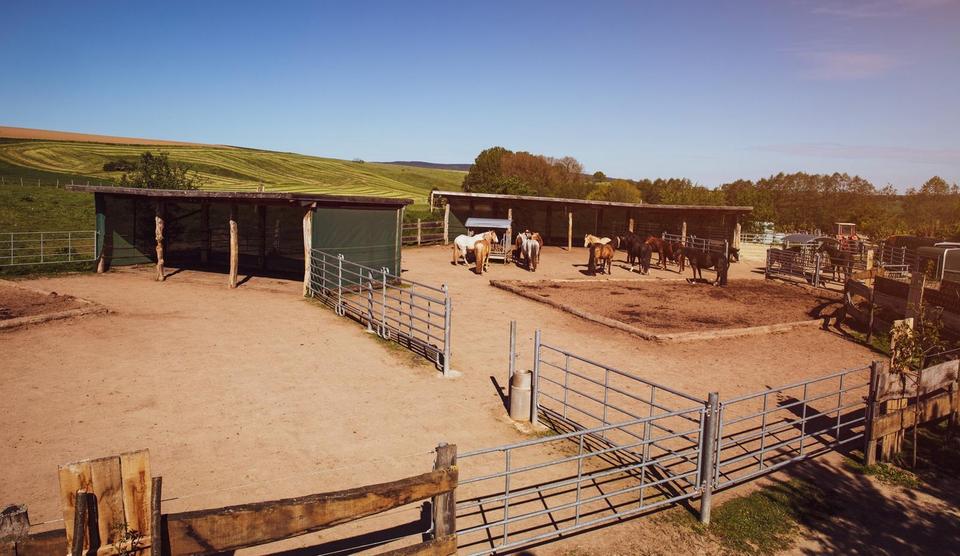 -frostsichere Tränken und Heuraufen in allen Paddocks