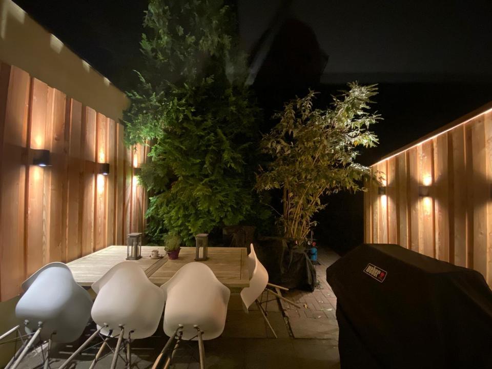 • Außenbereich: Gepflegter Garten mit beleuchteter Terrasse