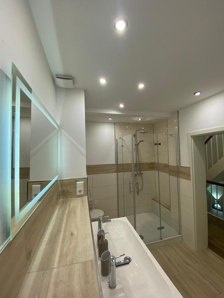 Das Haus erstreckt sich über vier Etagen plus Keller und überzeugt durch eine durchdachte Raumaufteilung: helle Wohnräume, moderne Bäder, eine hochwertige Küche sowie ein liebevoll angelegter Garten mit beleuchteter Terrasse.