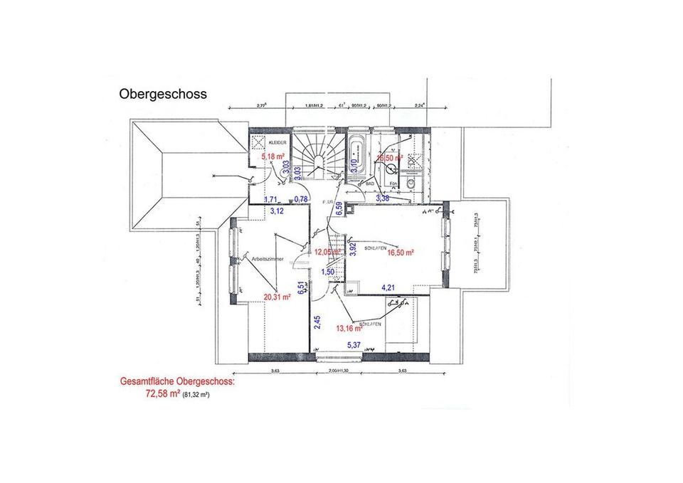 Das Obergeschoss verfügt über drei Schlafzimmer, ein Badezimmer und eine Abseite, die zurzeit als begehbarer Kleiderschrank genutzt wird und über einen Wäscheschacht, der direkt in den Waschkellerraum führt, verfügt. Der ausgebaute Spitzboden eignet sich hervorragend als großzügiges Schlaf-/Arbeitszimmer mit eigenem Badezimmer.