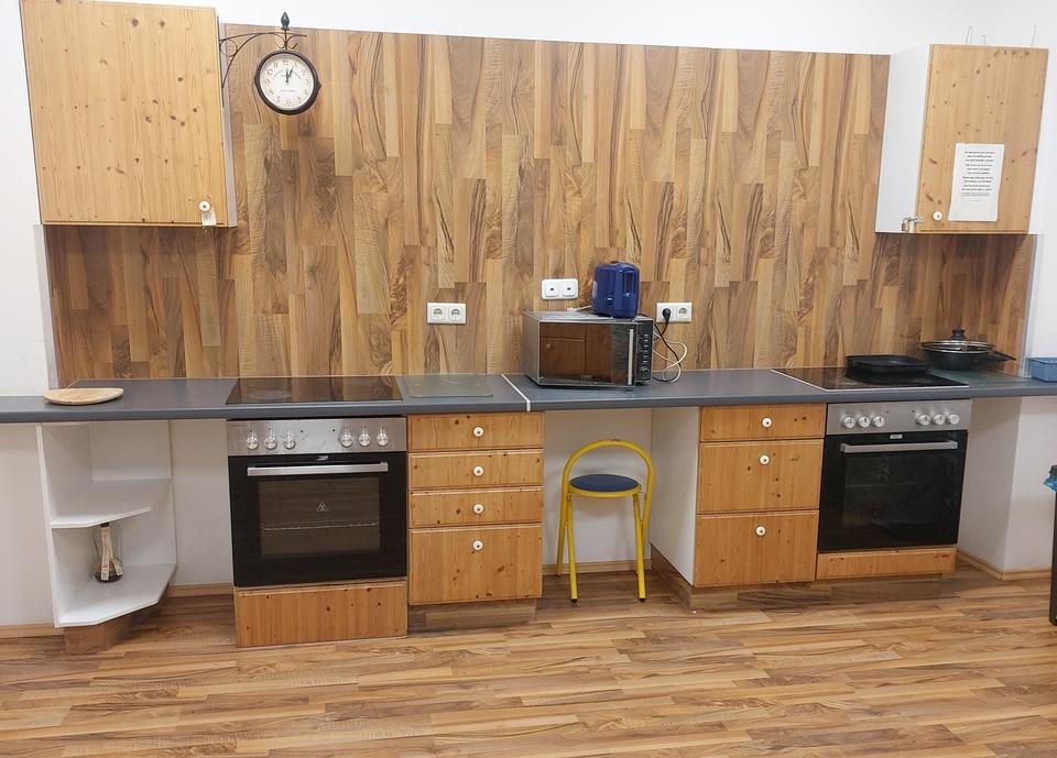 Duschen, Toiletten und Küchen werden gemeinschaftlich mit anderen Mieter auf der Etage genützt.