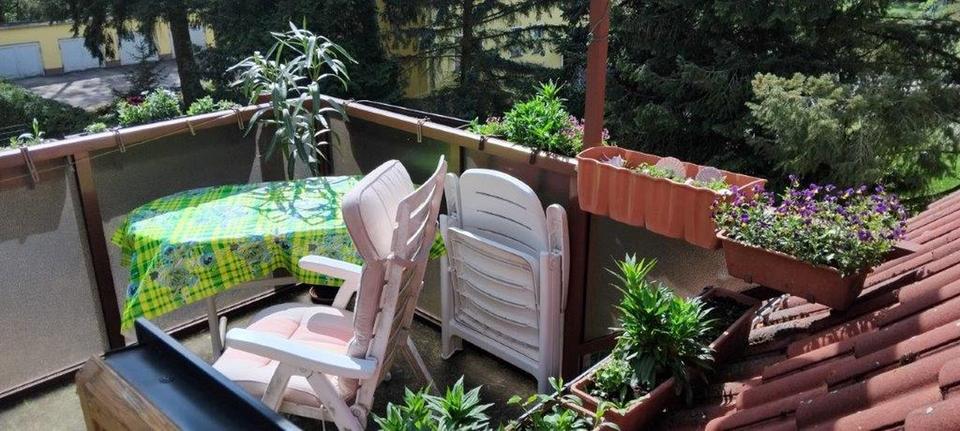 Im Jahr 2000 wurde ein Schüco-Alu-Balkon in der Größe 2m x 3,5m neu erstellt 2000. Dieser ermöglicht einen erhabenen Blick auf die Umgebung.