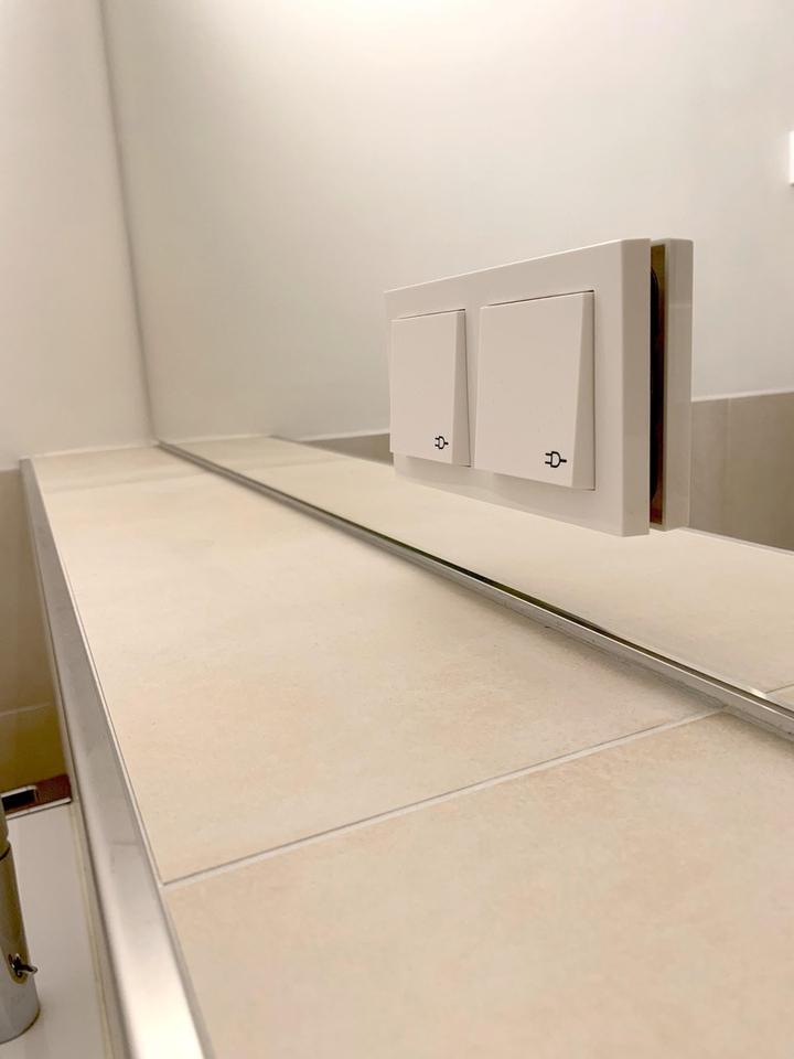 Die elektrische Markise mit Schalter im Wohnzimmer, unter Putz verlegt, ist von MarkiLux.
