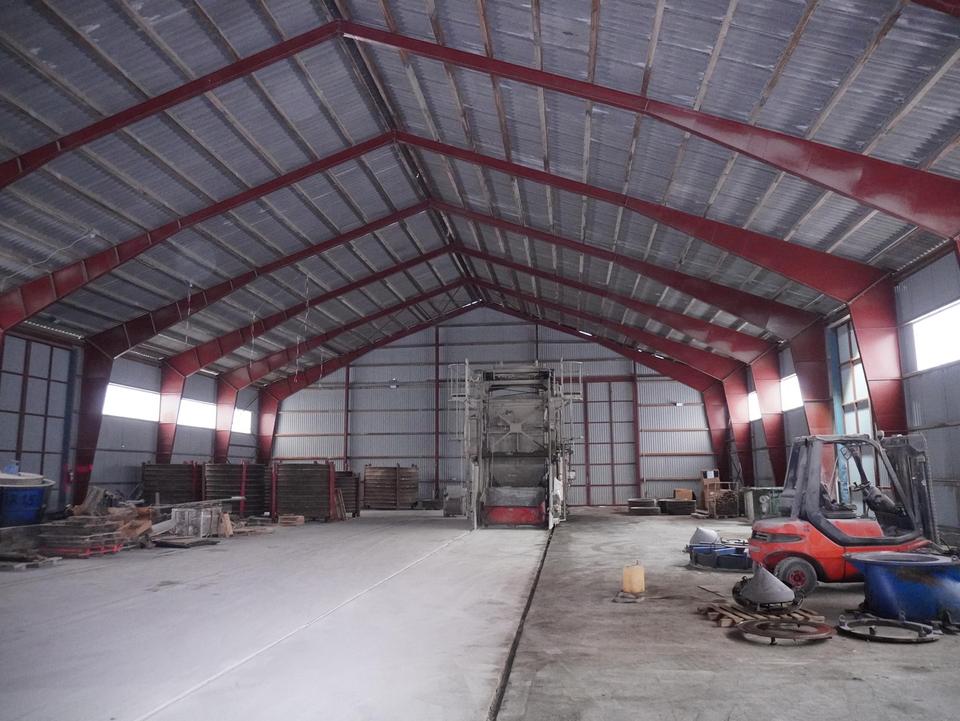 Die Industriefläche ist bebaut mit mehreren Hallen- und Nebengebäuden sowie einem Bürogebäude.