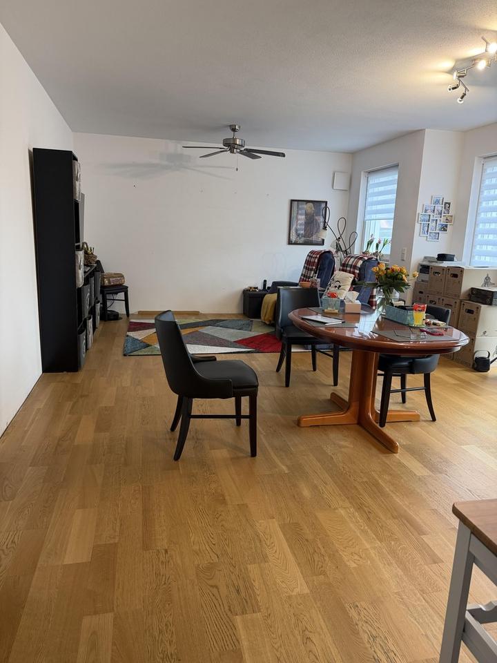 Der helle Wohn- und Essbereich bildet das Herzstück der Wohnung und bietet direkten Zugang zur schönen Terrasse, die zusätzlichen Wohnraum im Freien schafft und zum Entspannen einlädt.
