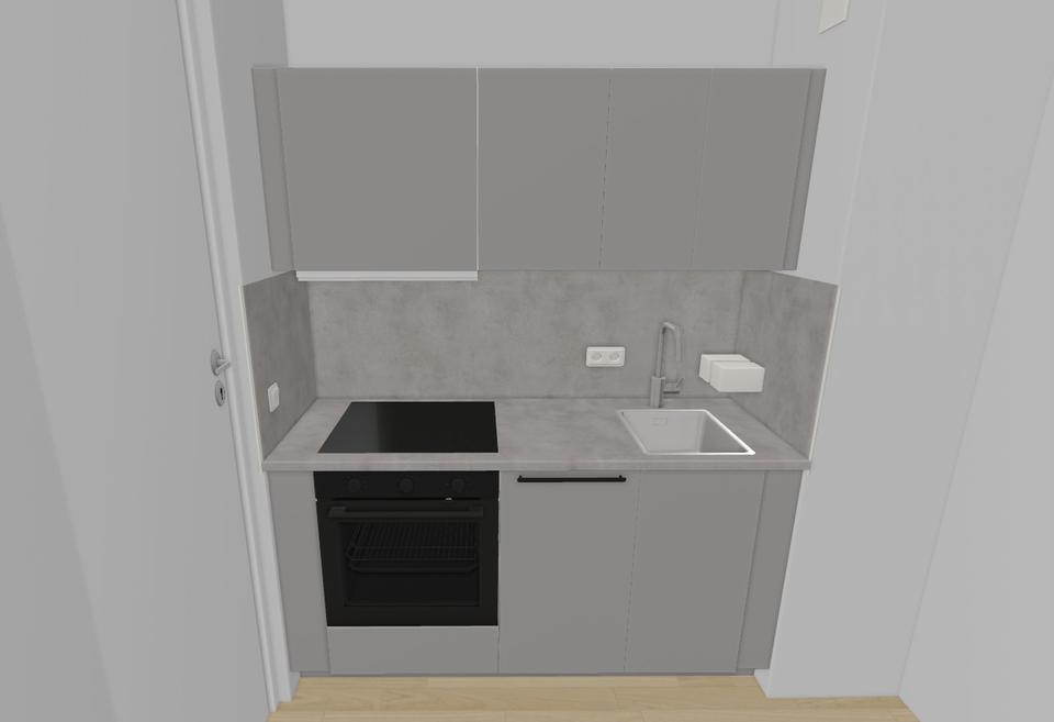 Im Zentrum der Wohnung steht eine nagel-neue Küche, die durch ihre klare Gestaltung und ihre praktische Aufteilung besticht. Sie bietet großzügigen Stauraum, der durch praktische Wandregale sinnvoll ergänzt wird – ideal für Vorräte, Geschirr und Küchenutensilien. Ausgestattet mit einem vollwertigen Backofen, Spülmaschine sowie einem modernen Cerankochfeld erfüllt die Küche sämtliche Anforderungen an eine zeitgemäße Koch- und Wohnkultur.