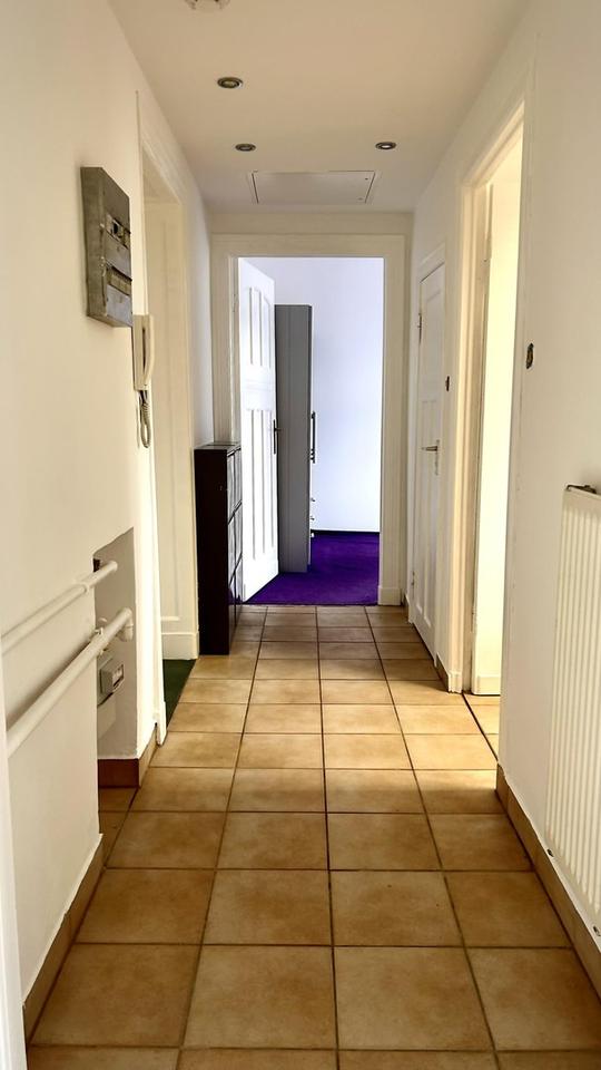 Diese helle 2-Zimmer-Wohnung verbindet klassischen Altbau-Charme mit modernen Wohnstandards. Die großen Fenster sorgen in allen Räumen für viel Tageslicht, während hohe Decken ein großzügiges Raumgefühl schaffen.
