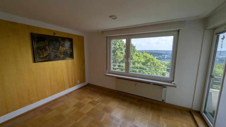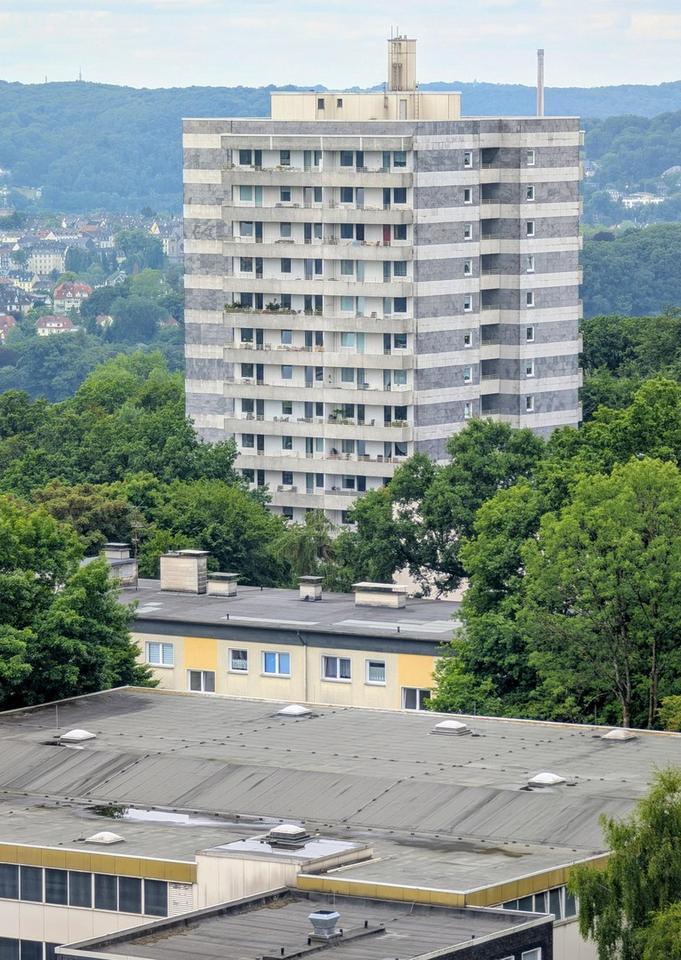 Zu dieser gut geschnittene 3,5-Zimmer-Wohnung mit etwa 90 m² gelangen Sie über zwei Aufzüge, die 2023/2024 komplett saniert wurden. Durch die Lage in der obersten Etage „tanzt Ihnen niemand auf dem Kopf“, von den Nachbarn hört man fast gar nichts.