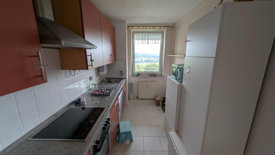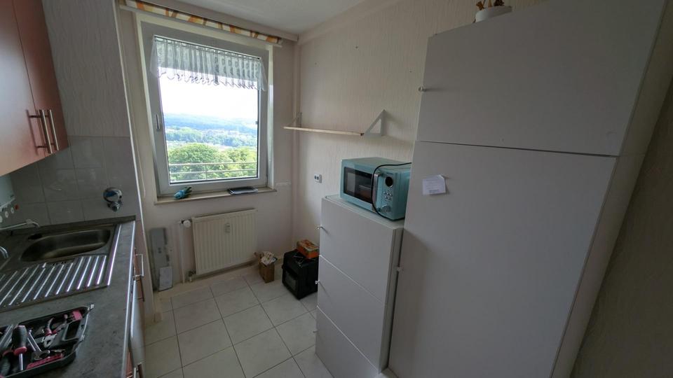 Um Interessenten möglichst vor der Besichtigung auch „Mängel“ nicht vorzuenthalten, noch ein paar Anmerkungen: Es handelt sich um eine Wohneinheit mit 65 Parteien. Kontakt mit den Nachbarn kann man haben, muss es aber nicht – die meisten Nachbarn sind ausgesprochen nett und hilfsbereit, was sich nicht nur während Corona, sondern täglich zeigt. Die 12. Etage ist „realistisch“ nur mit dem Aufzug erreichbar, insbesondere nach Einkäufen (aber das Treppenhaus kann auch als Fitnesscenter genutzt werden ). Ich selbst hatte (wenn ich nicht zu meiner Lebensgefährtin gezogen wäre) noch folgende Arbeiten geplant: Austausch des Laminats gegen hochwertige Vinylböden, Austausch der Eingangs- und Innentüren durch Kassetten- bzw. Glastüren, Entfernen der nicht benötigten Türzargen (Wohnzimmer, Küche – dadurch entstünde noch mehr Luftigkeit), Einbau einer zweiflügeligen Tür mit Aufbewahrungsfächern in Abstellraum 2.