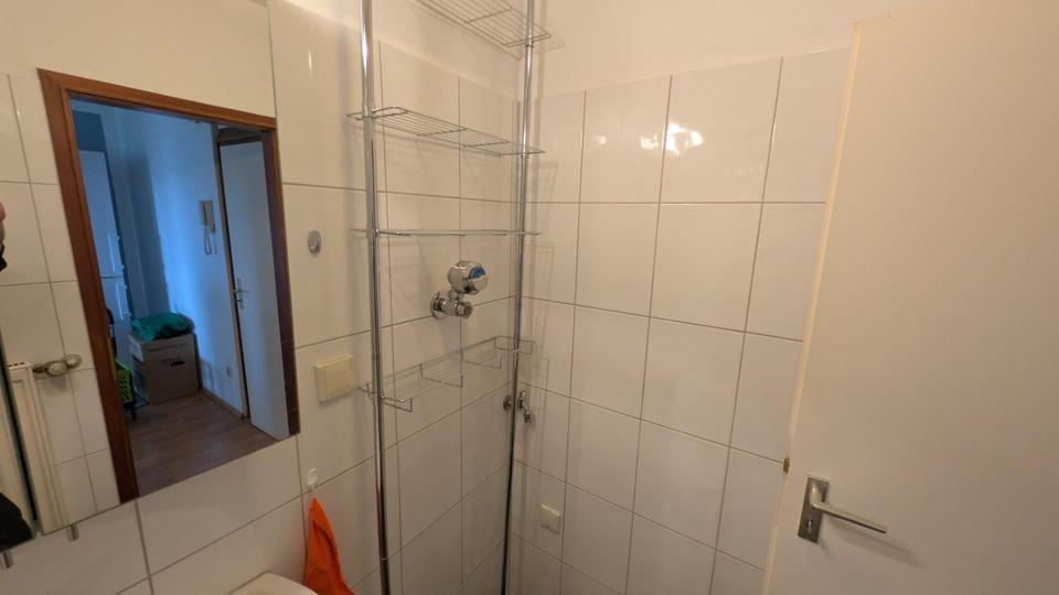 Bad und WC (beide innenliegend mit stromloser Abluftvorrichtung) wurden 2015 nochmal von einem Fachbetrieb hochwertig umgebaut: eine große Dusche mit Glaswand, Spritzschutz und Regenschauer-Dusche, Waschtisch mit Unterschränken, Waschmaschinenanschluss, Handtuchheizung, Armaturen (alle Armaturen hansgrohe).