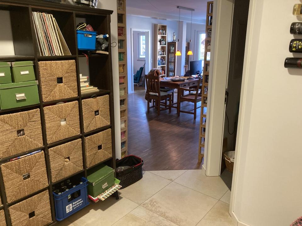 Eichenmassiv – Fußböden überall sowie Fliesen im Eingangsbereich, Bad, WC, Abstellraum.