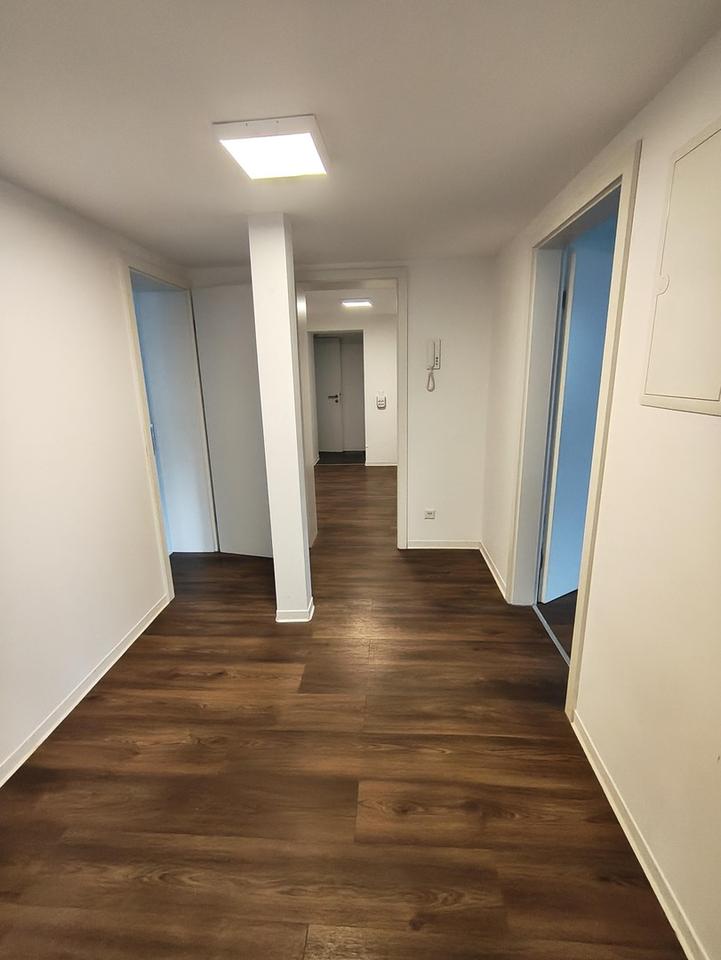 Die besondere Bauweise sorgt für einen individuellen Grundriss und eine eher gemütliche Raumwirkung im vorderen Bereich der Wohnung.