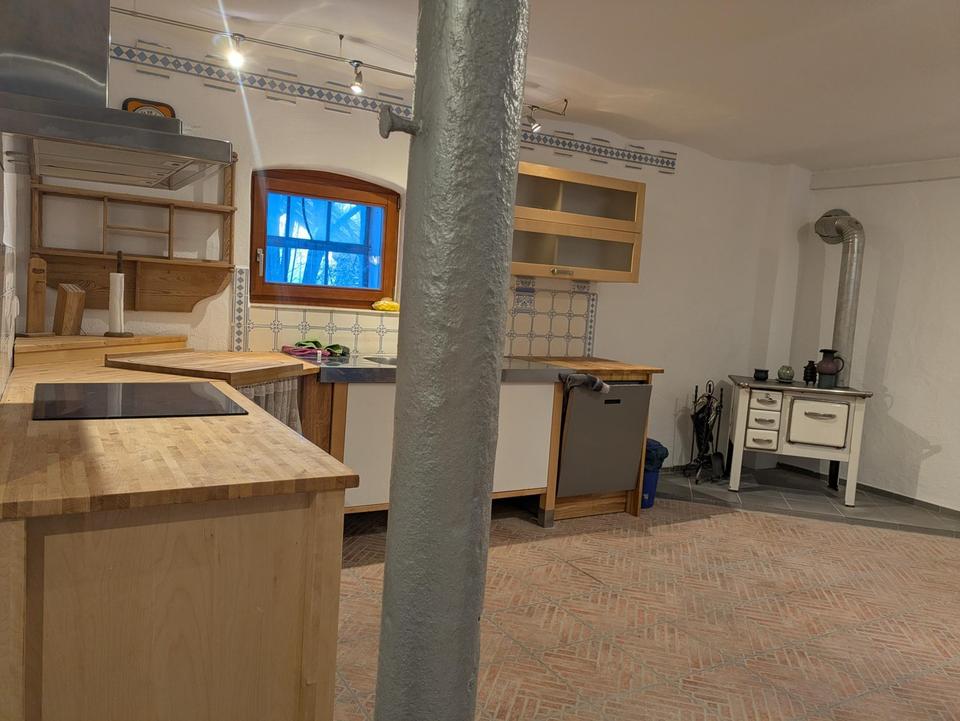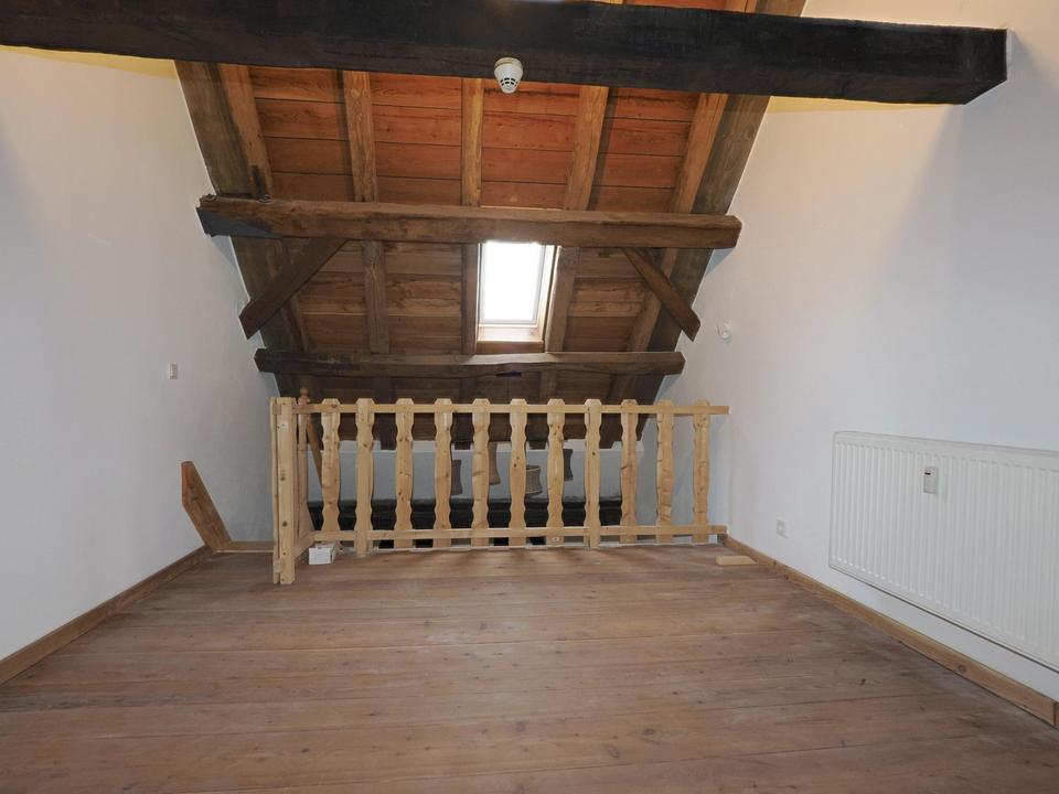 Wenn Sie den Charme alter Bausubstanz lieben, könnten Sie dieses Reihenmittelhaus ab 01. Arpil 2026 anmieten. DIe Immobilie steht unter Denkmalschutz. Es wurden hier mit viele Liebe zum Detail in einem ehemaligen Gutshof aus dem Jahr 1839 insgesamt 3 Wohnobhekte mit besonderem Flair und viel Fachwerk erschaffen. Sie beziehen dieses Reihenmittelhaus in saniertem Zustand. Genießen Sie das Tageslichtbad mit bodengleicher Dusche, Marmorfussboden und Fußbodenheizung. Genießen Sie das Kochen und Speisen in der sehr großzugigen, voll ausgestatteten Küche mit Terrakottaboden und Fußbodenheizung. Das 25 m2 große gemütliche Wohnzimmer lädt zum Verweilen ein. Von hier aus gelangen Sie über eine Wendeltreppe in das Schlafzimmer datüber ( ca. 23 m2 ). Von dort aus können Sie eine weitere Ebene betreten, auf der Sie Ihren Hobbyraum oder das Homeoffice einrichten können. Beachten Sie dass diese Immobilie aufgrund der offenen Loft-Architektur nur für maximal 2 Personen ( ein Paar ) ohne Kinder geeignet ist, da es nur ein Schlafzimmer gibt. Wenn Sie spaß am Gärtnern haben, steht Ihnen hjinter dem Haus ein eigener ca. 150m2 großer Garten zur Verfügung. Diesem Mittelhaus ist ein eigener trockener Lagerraum und ein PkW Stellpülatz vor dem Haus zugeordnet. Zusätzlich gibt es einen abschließnaren, überdachten Lagerraum für Fahrräder der allen 3 Mietparteien zur Verfügung steht. Haustiere sind nach Absprache erlaubt. Wie vermieten NICHT über das Amt.