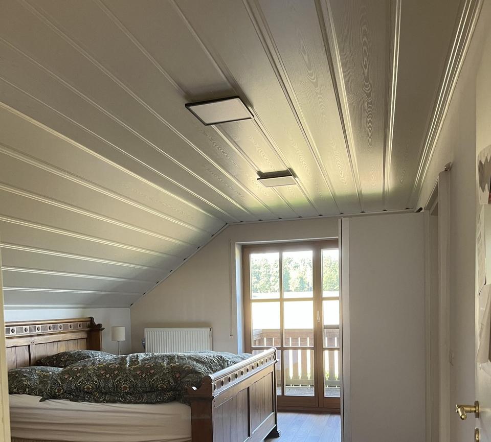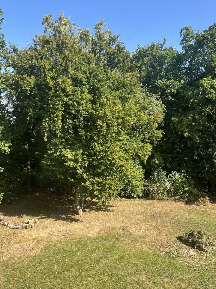 Die Außenanlagen sind ebenso gepflegt wie funktional: Die 2021 erneuerte Einfahrt führt zu einer Doppelgarage mit zwei Fenstern und einer fest installierten Wallbox sowie zu vier weiteren Stellplätzen – mit genug Platz auch für Wohnmobil, Boot oder Wohnwagen. Eine Photovoltaikanlage auf dem Dach sorgt für nachhaltige Energie, während im oberen Garten ein Rasenroboter die Pflege übernimmt.