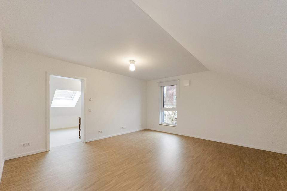 • Eichenparkett in den Wohnbereichen, im Dachgeschoss Massivholzfußboden