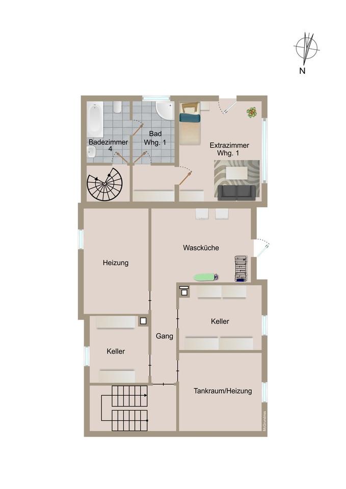 Balkon, Terrasse, Keller, Duschbad, Laminat, Fliesen