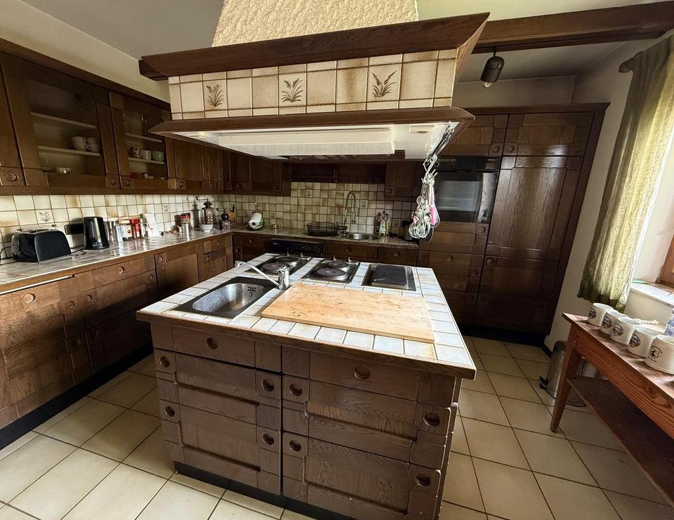 Von hier aus gelangen Sie in die Bibliothek und ins Arbeitszimmer (beide Zimmer mit Zugang zur großen, rückseitigen Gartenterrasse), in die Küche mit Vorratskammer, ins Esszimmer (von Küche und Esszimmer gelangen Sie auf die Frühstücksterrasse) und in den ca. 91 m² großen Wohnbereich mit Kaminzimmer (mit offenem Kamin) und dem eigentlichen Wohnzimmer (mit Kachelofen). Vom Kaminzimmer aus haben Sie Zugang zur großen Gartenterrasse mit Außenkamin.