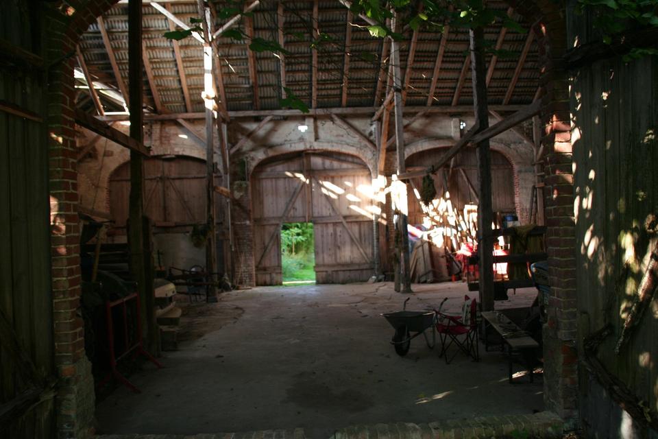 Ein imposantes 4 Meter hohes Tor mit der anschliessenden Durchfahrt unterteilt die beiden Wohnungen und führt in den grosszügigen, von Blicken geschützten Innenhof. Dieser wird auf beiden Seiten von zwei großen Ställen sowie einer stattlichen Scheune umrahmt, die gemeinsam eine beeindruckende Nutzfläche von ca. 1.400 m2 bieten. Die Architektur des Hofes sorgt für absolute Privatsphäre – ein idealer Rückzugsort für Menschen, die das Landleben genießen möchten. Sie bietet auch die Möglichkeit die Wohnnutzung nach Absprache mit dem Bauamt gefühlvoll zu erweitern.