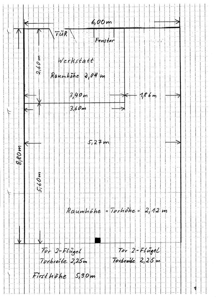 Baugrundstück erschlossen, mit vorhandener großen Garage u. kleiner Werkstatt
