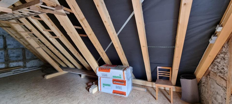 Das komplette Dachgebälk wurde vor etlichen Jahren von einer Fachfirma komplett erneuert und mit Biberschwanzziegeln eingedeckt.