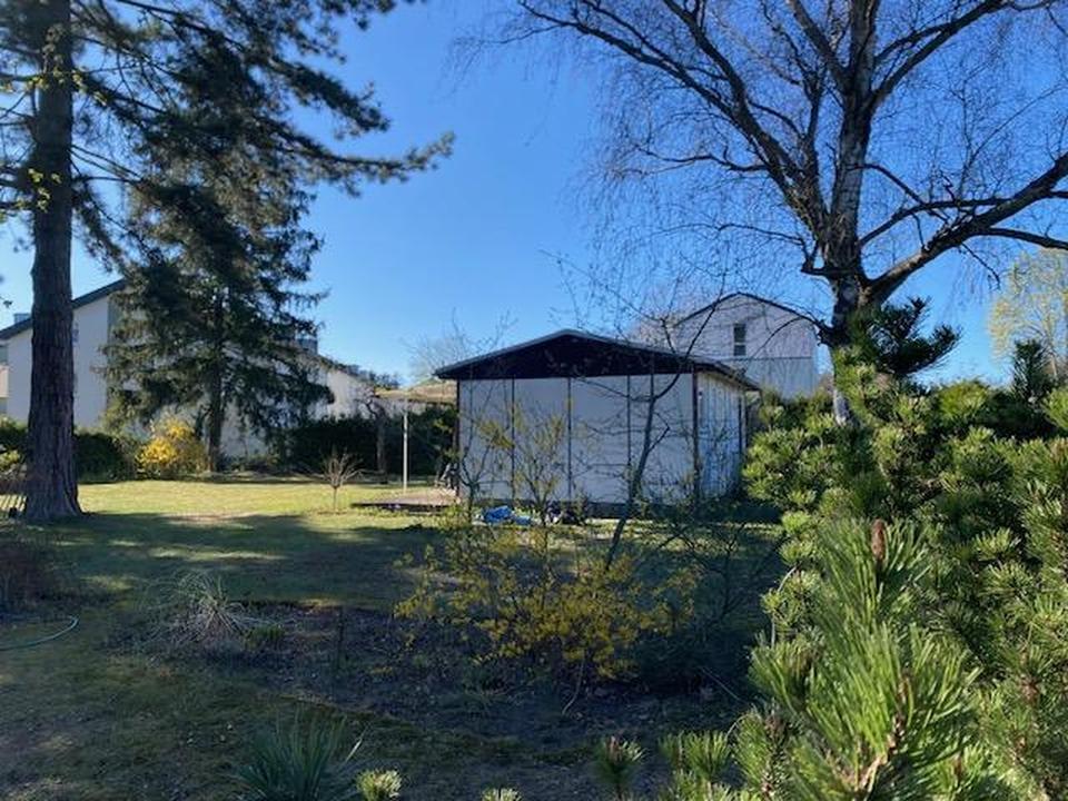 Die Fläche ist überwiegend frei und gut nutzbar. Aktuell befinden sich auf einem Teil ein älterer Bungalow sowie ein kleiner Geräteschuppen. Beide Baukörper sind einfach ausgeführt und können zurückgebaut werden. Dadurch entsteht eine großzügige, zusammenhängende Entwicklungsfläche.