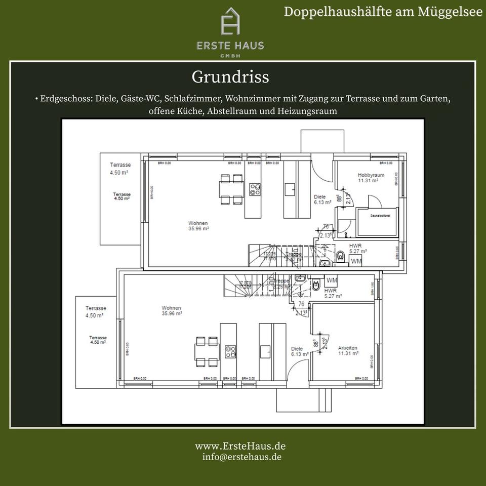 Diese Doppelhaushälfte mit 150 m² Wohnfläche auf drei Ebenen liegt im idyllischen Stadtteil Berlin-Müggelheim, umgeben von Seen und Wäldern. Das Haus verbindet Natur, Komfort und Energieeffizienz (A+) – und ist sofort bezugsfertig. Der Verkauf erfolgt direkt vom Bauträger – provisionsfrei.