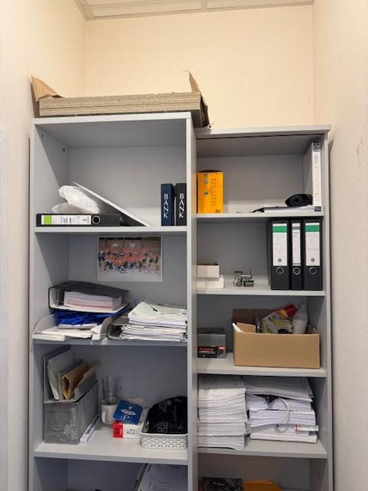 Büromöbel inklusive (2 Arbeitsplätze, Schränke, Stühle u.a.)