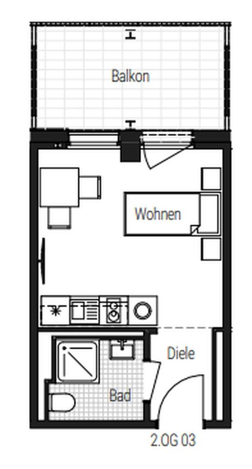 Die effizient geschnittene Wohnung vereint modernes Design mit Funktionalität und eignet sich perfekt für urbanes Wohnen mit hohem Komfort.