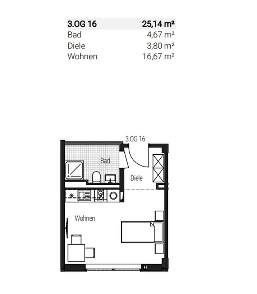 Die kompakte, effizient geschnittene Wohnung vereint modernes Design mit Funktionalität und eignet sich perfekt für urbanes Wohnen mit Komfort.