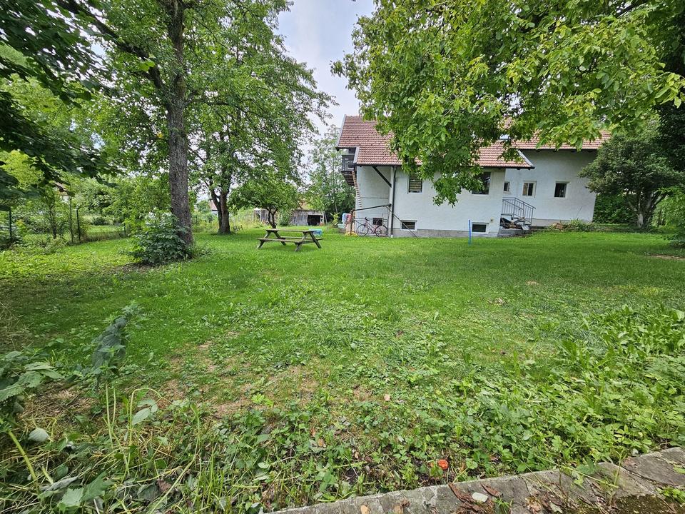 Für eine Wohngenossenschaft /Generationenprojekt könnte das Objekt u.U. von besonderem Interesse sein, da man sich das charmante und großzügige Grundstück mit altem Baumbestand gemeinsam teilen könnte. Derzeit ist das Grundstück mit einem Wohnhaus bebaut, welches nach Richtung Süden ausgerichtet ist. Nachdem der Bebauungsplan für dieses Grundstück eine Nachverdichtung vorsieht, welcher bereits rechtskräftig ist, wäre es möglich das Grundstück mit einem großen oder zwei kleineren Häusern (DH) im östlichen Grundstücksteil zu bebauen. Durch die Bebauung mit einem größeren Haus oder zwei Häusern von je ca. 180 qm Grundfläche ließe sich eine gesamte Wohn-/Nutzfläche von ca. 700 qm realisieren, ohne das Grundstück zu überladen und zu sehr zu verdichten.