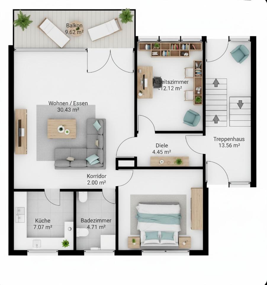 Einheit 2 (Souterrain): Ein separates, ca. 36 m² großes 2-Zimmer Apartment mit eigenem Bad und Kochnische. Perfekt zur Vermietung als Single-Wohnung, Home-Office oder Gästebereich.