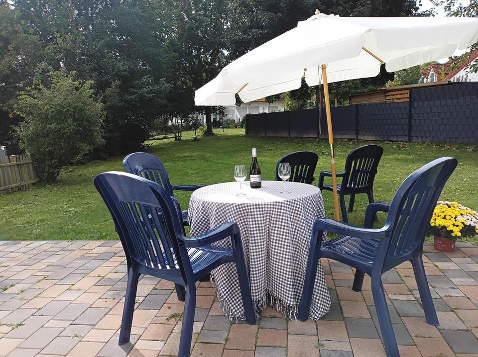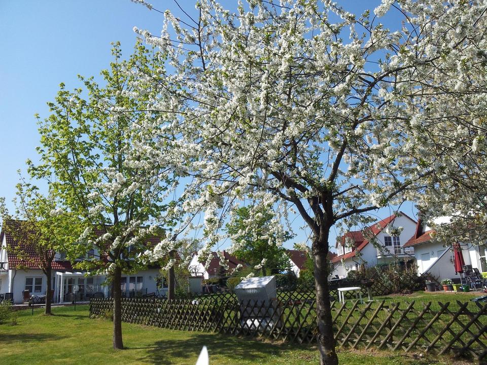 Das Grundstück mit ca. 700 m2 ist mit Rasen und Büschen bepflanzt. Der Garten beinhaltet auch einen Anteil am zentralen Teich. Ein Carport und ein Schuppen komplettieren die Doppelhaushälfte. Weiterhin gibt es einen Miteigentumsanteil an einem Zugang im nahegelegenen Bodden (Ostsee).