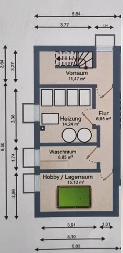 Im Obergeschoss und im ausgebauten Loft im Dachgeschoss gewährleisten Heizkörper eine effiziente Beheizung. Der Loftbereich wird durch Dachflächenfenster mit viel Tageslicht versorgt und schafft eine helle, angenehme Wohnatmosphäre.
