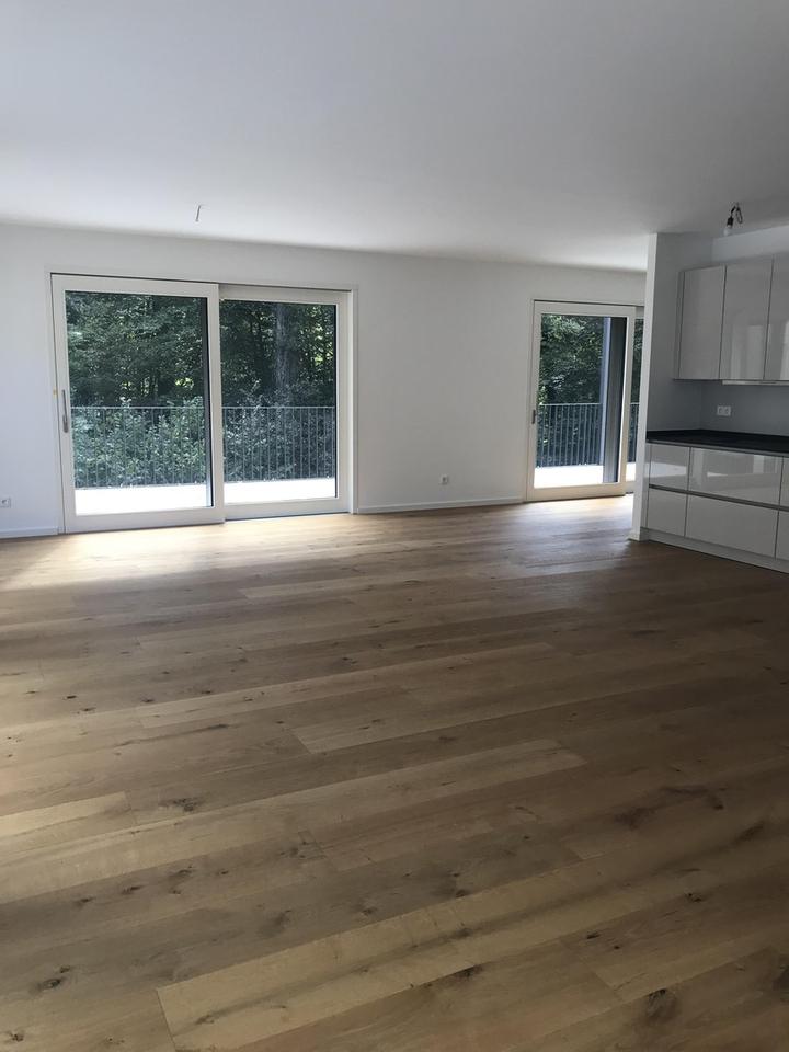 Interessenten erwartet eine Immobilie der besonderen Art, denn sie präsentiert sich stilprägend und eindrucksvoll. Wer das Besondere sucht, ist hier genau richtig. Diese Wohnung hat den Wow-Effekt und überzeugt mit einem großzügigen Grundriss, hellen Räumen sowie einer hochwertigen Ausstattung: SieMatic Einbauküche mit Miele Elektrogeräten und Natursteinarbeitsplatte, Fußbodenheizung, Tageslicht-Dusch-Bad, Parkettboden, Alu-Holz-Fenster mit 3-fach Verglasung, elektr. Raffstores, Außenfassade aus Sandstein sowie AlucoBond-Verkleidung im Penthousebereich, Tiefgarage, Fahrradabstellplätze. Je nach Etage gehören großzügige Balkone oder Terrassen mit Garten, sowie direktem Zugang in den Wald zu dieser Wohneinheit.
