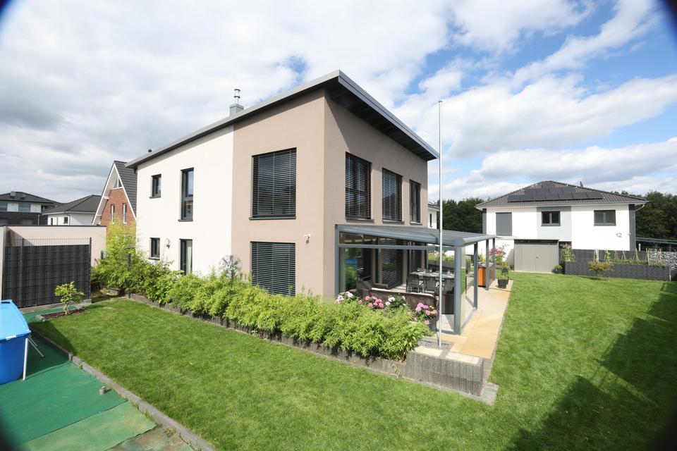 Das Haus überzeugt durch eine gehobene und geschmackvolle Ausstattung, die bereits im Kaufpreis enthalten ist. Die Badezimmer sind hochwertig ausgestattet, teilweise mit exklusiven Elementen der Marke JOOP!, und bieten ein stilvolles Wohlfühlambiente.