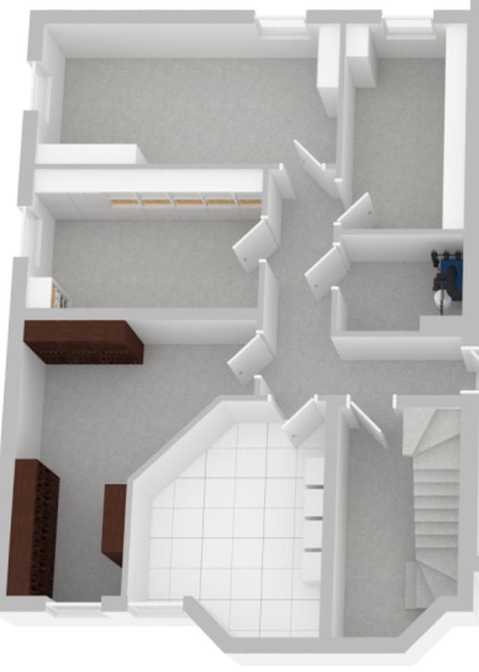 Die Kellerräume ( bis auf einen Raum) , das Treppenhaus, Flure, Küchen und Bäder sind mit Bodenfliesen ausgelegt. Die Bäder sind deckenhoch verfliest.