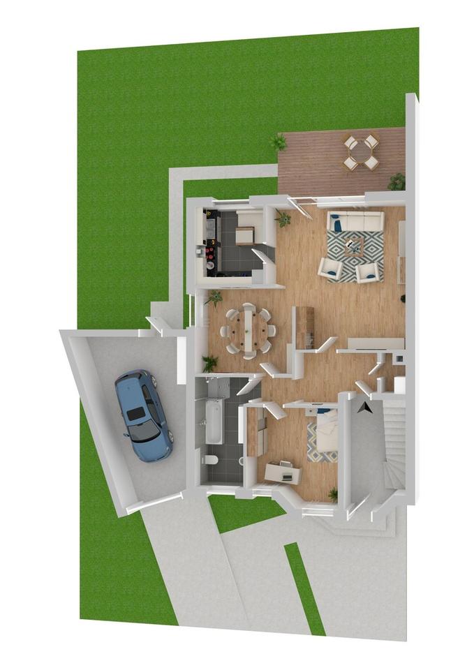 Mit geringem Aufwand kann die Haushälfte auch als Einfamilienhaus genutzt werden.
