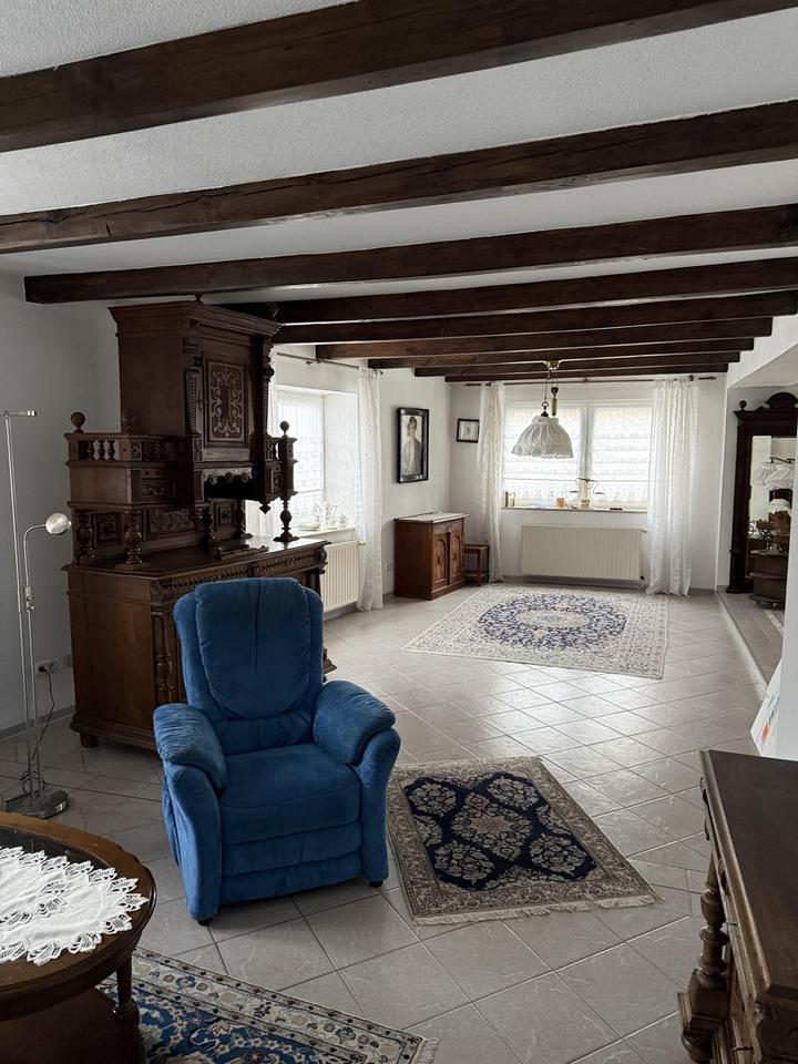 Ich biete hier ein wunderschönes Einfamilienhaus, welches aber auch als Zweifamilienhaus genutzt werden kann. Im Erdgeschoss befindet sich ein sehr großes Wohn-/Esszimmer mit Kaminofen, eine Küche mit zusätzlichem Holzherd, ein Abstellraum, ein Bad mit Dusche sowie ein Wellnessbereich mit Sauna und Tauchbecken.
