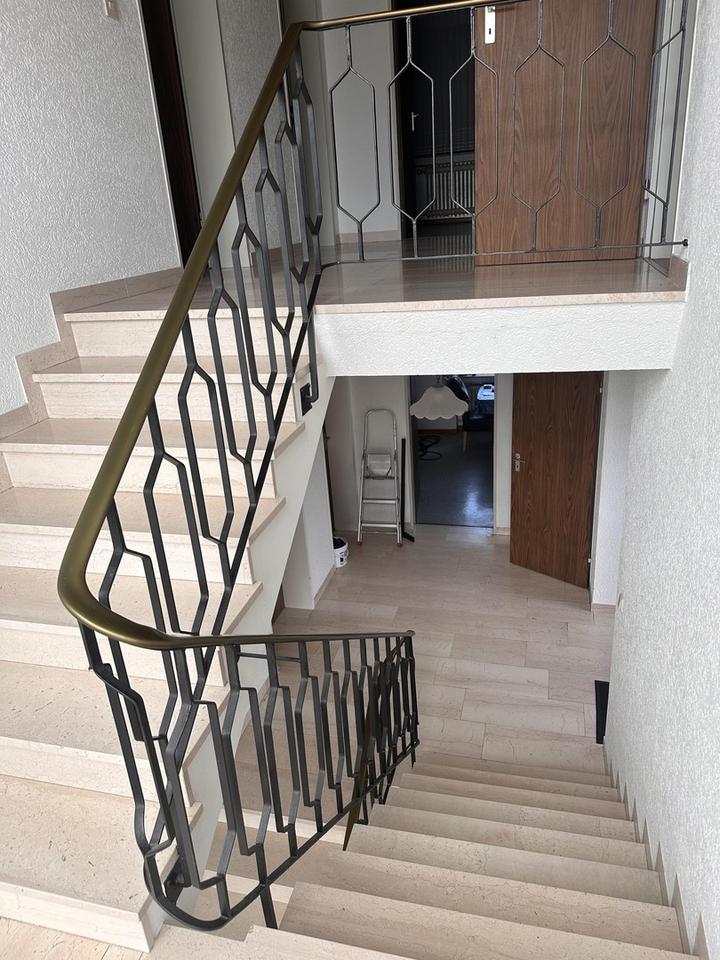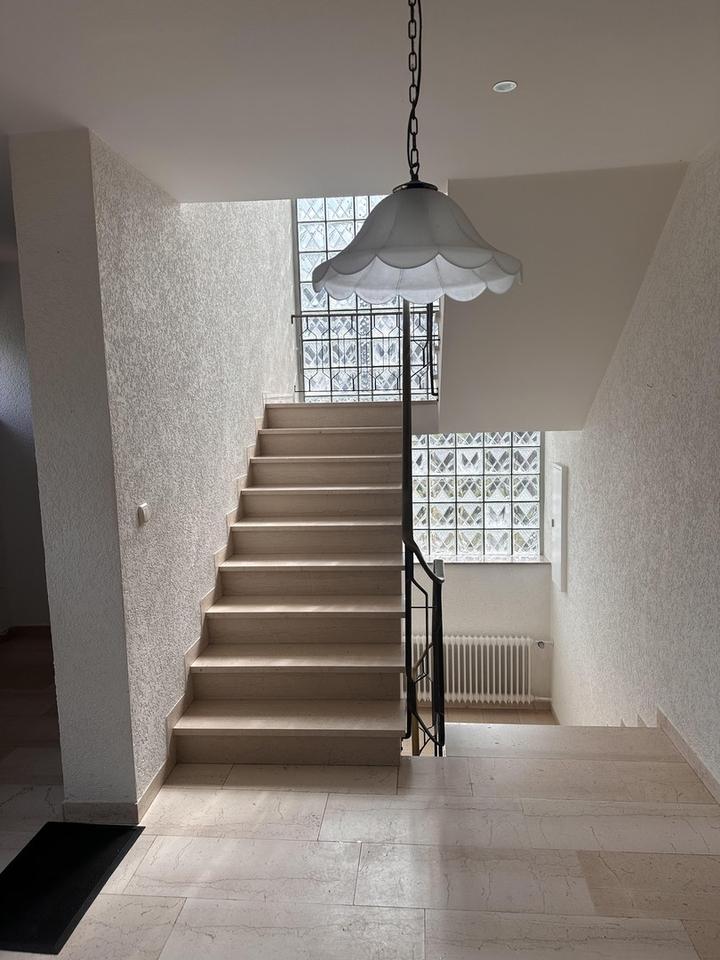 Im Innenbereich wurden Vinylböden sowie Fliesenböden verlegt. Ein besonderes Highlight ist das hochwertige Treppenhaus aus Marmor, das dem Haus einen eleganten und repräsentativen Charakter verleiht. Die verbauten Holzfenster mit Doppelverglasung sorgen für eine angenehme Wohnatmosphäre. Sämtliche Fenster sind mit innenliegenden Rollläden ausgestattet; im Erdgeschoss sogar mit elektrischem Antrieb.