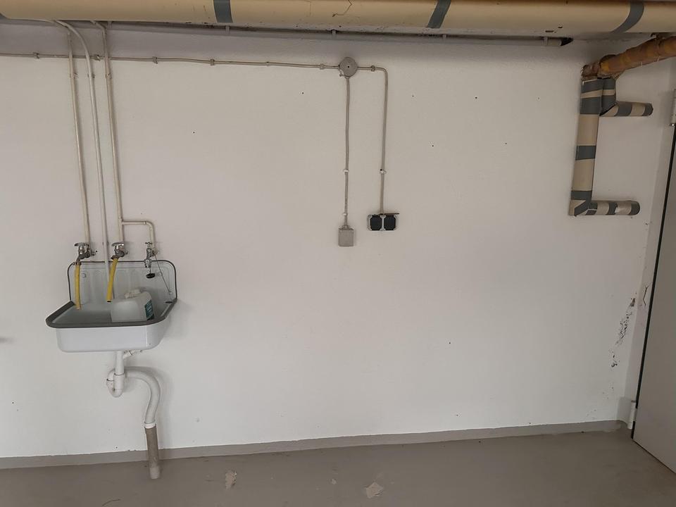 ein Wasch- und Trockenraum mit Anschlüssen für Waschmaschine und Trockner
