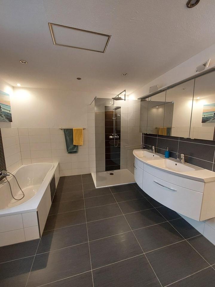 – Zwei freundliche Badezimmer jeweils mit Doppelwaschtisch, zusätzliches Gäste-WC