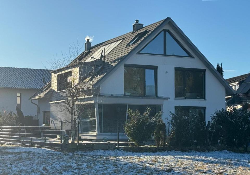 Das Haus wurde konsequent in einer sehr hochwertigen Ausstattungsqualität geplant und umgesetzt und bietet auf fast 300 m² Wohnfläche ein außergewöhnliches Wohngefühl aus moderner Architektur, großzügiger Raumwirkung und hochwertiger Materialauswahl. Die offene Bauweise mit lichtdurchfluteten Räumen, Echtholz-Parkett, Natur-Steinfliesen und dem beidseitigen Holzkamin schafft eine besondere Atmosphäre und verbindet modernes Design mit Wärme und Wohnkomfort. Die offene moderne Bauweise zieht sich durch das gesamte Haus. Moderne Treppen kombiniert mit Geländern aus Edelstahl, Glas und Lichträumen verbinden das Erdgeschoss bis zu dem ausgebauten Dachspitz, von welchem durch die großzügige Verglasung die Weitsicht vom Hochfirst bis hin zum Feldberg reicht.