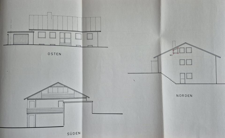 Das Erdgeschoss ist mit insgesamt fünf hellen Räumen, offenem Wohn, – Essbereich mit Kamin, Bad/Dusche/WC und separatem WC ansprechend geschnitten, – nach Wunsch und Vorstellung selbstverständlich auch veränderbar.
