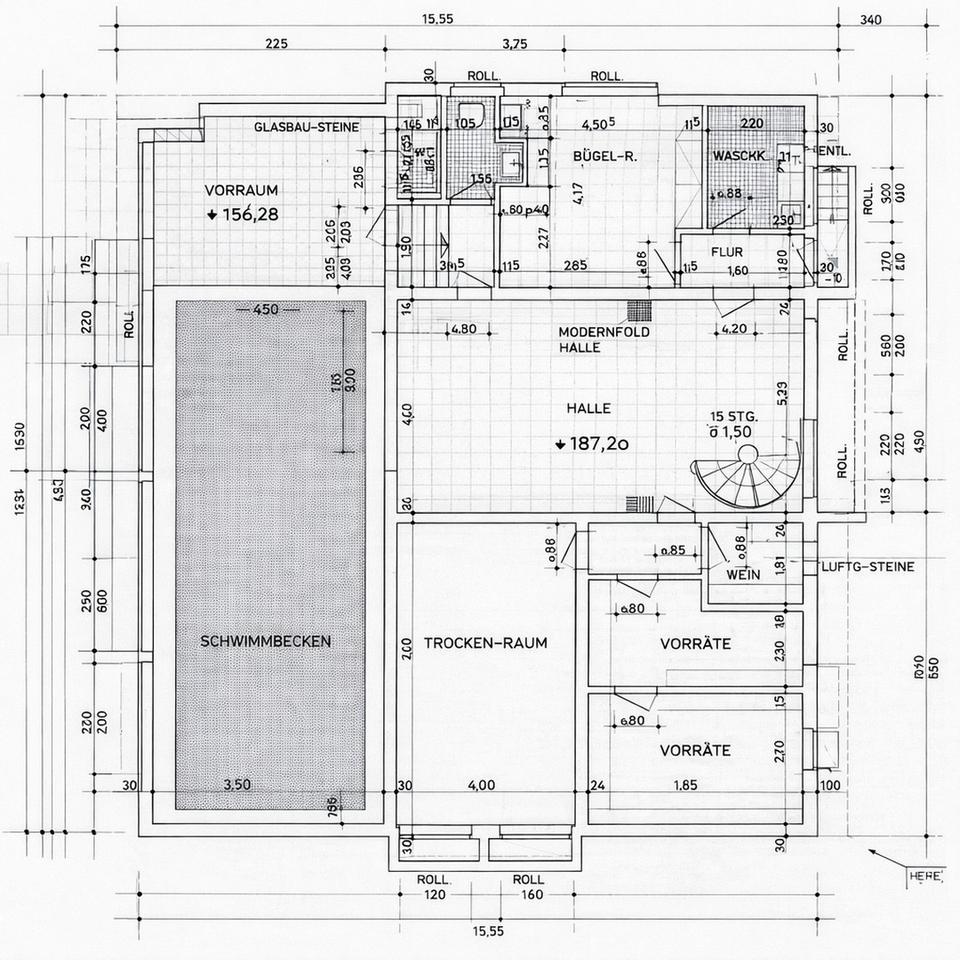 Weiterhin befinden hier sich zwei Vorratsräume, ein Weinkeller und der Haushaltsanschlußraum.