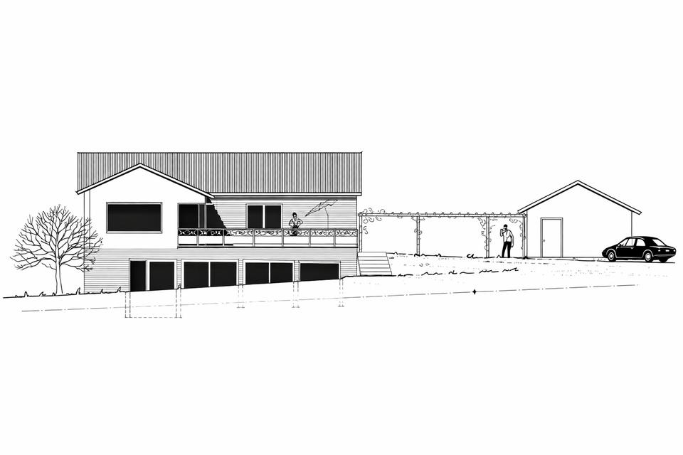 Der Schlaftrakt umfasst das Eltern- und zwei Kinderschlafzimmer und das Bad sowie ein getrennter Waschraum.