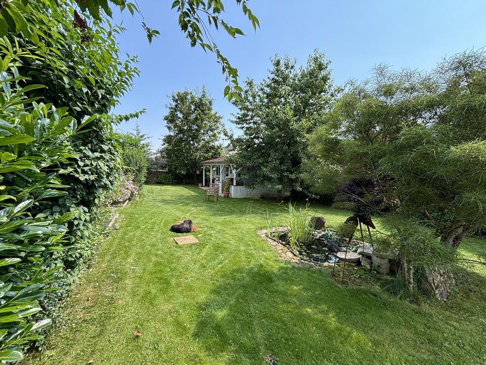 Umgeben von einem einladenden, eingewachsenen Garten (Gesamtgrundstück 1357m2) bietet das Haus innen sowie auch außen ein wohnliches und einladendes Ambiente.