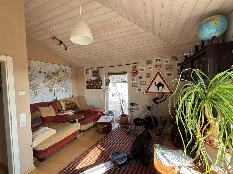 Die hohen Decken , viel Licht ,die Ausstattung mit viel Holz und Lehm geben hier nochmal eine besonders gute Atmosphäre und lassen in der Nutzung der Räume alles offen.