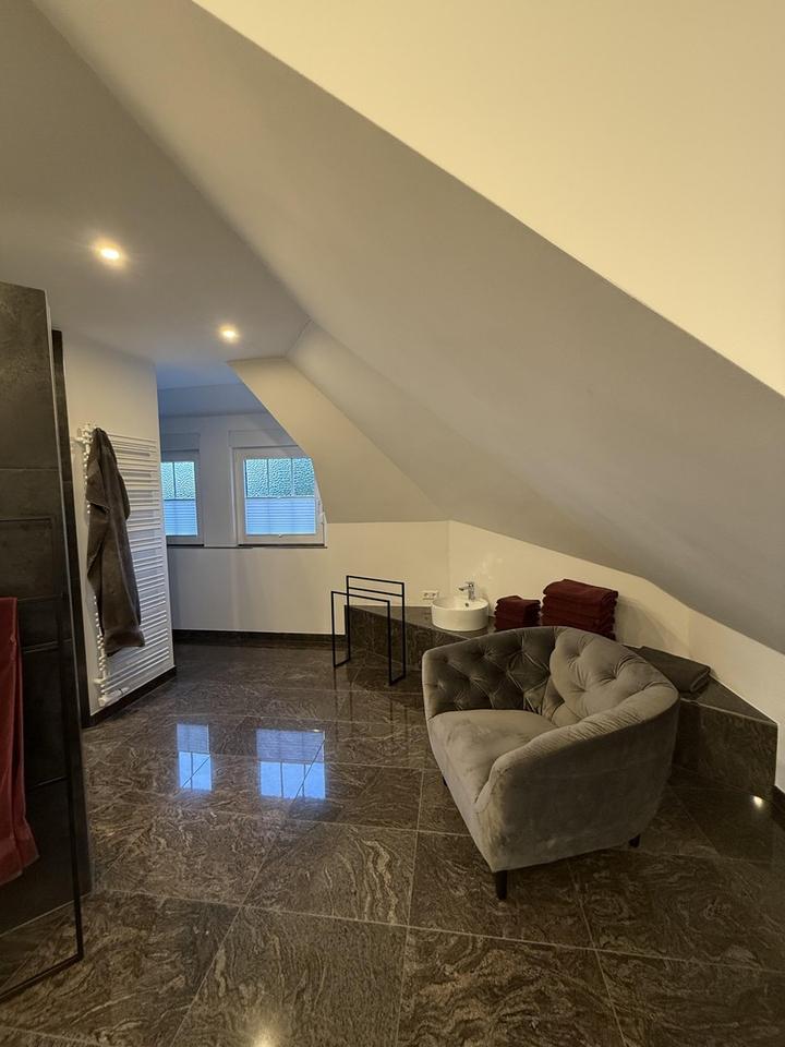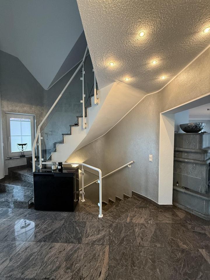 Sonstiges: EG und OG Granitböden, Granittreppen, 2 Kamine, Klimaanlagen, Wintergarten, elektrische Beschattungen und Markisen, Aussenrolläden, Glasfaseranschluss, sehr ruhige Sackgassenlage 100m vom Waldrand enfernt