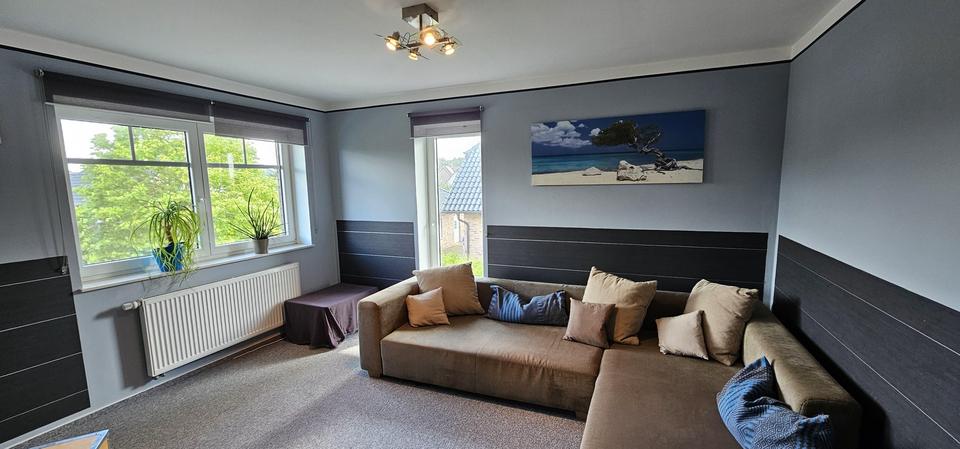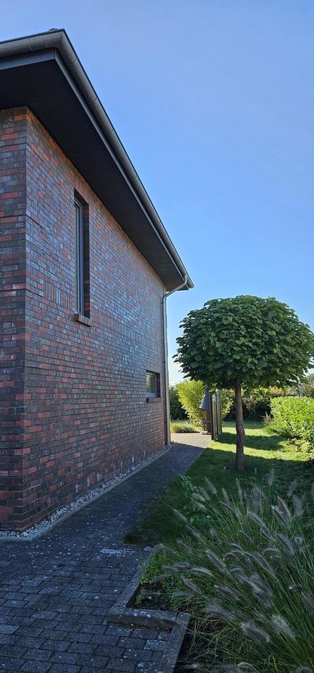 Für zusätzlichen Wohnkomfort sorgen Fußbodenheizung in mehreren Räumen, bodentiefe Fenster, ein Kaminofen sowie Jalousien. Der Hauswirtschaftsraum ist großzügig geschnitten und direkt von der Garage aus begehbar – so gelangen Sie auch bei Regen trocken ins Haus.