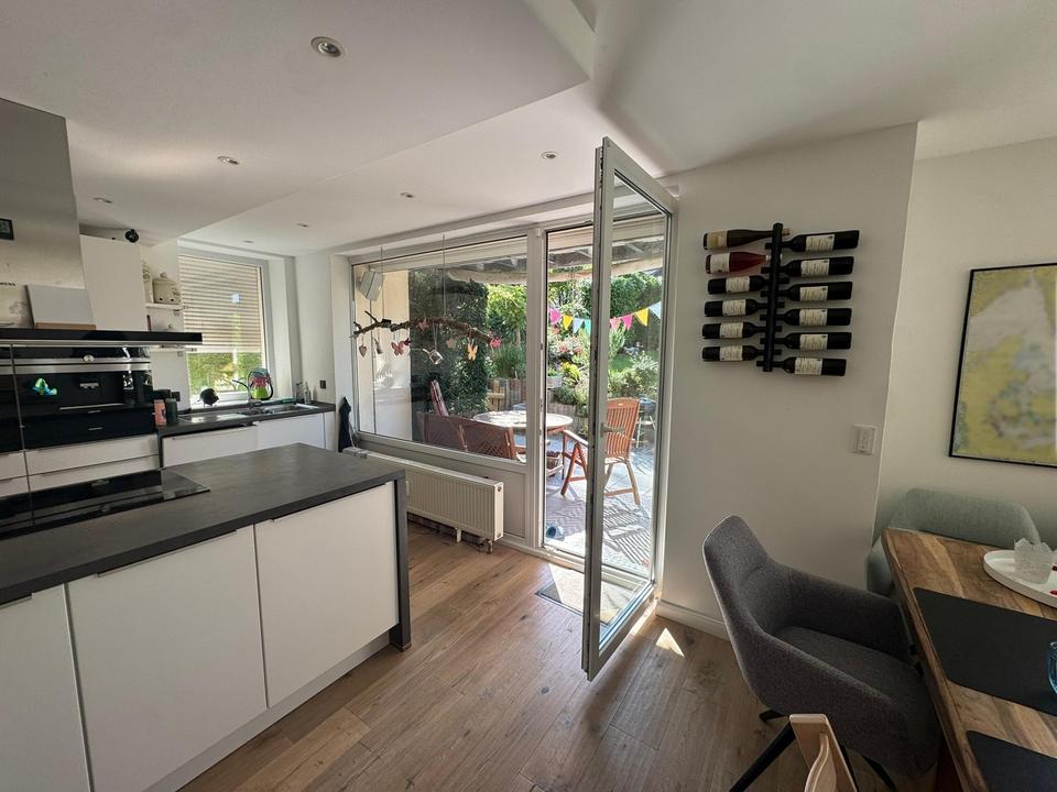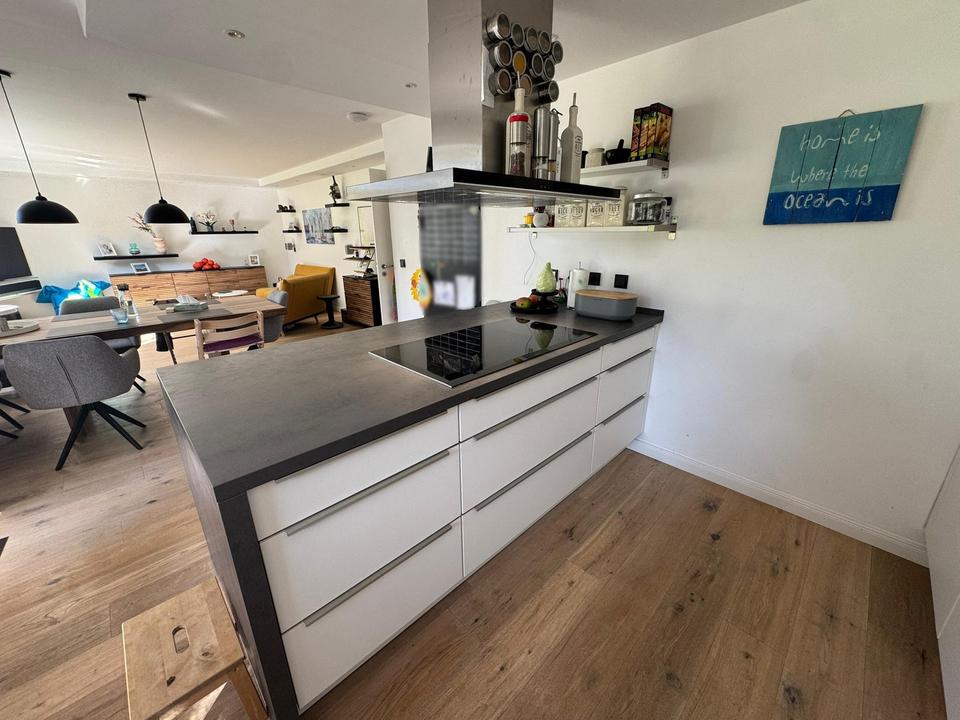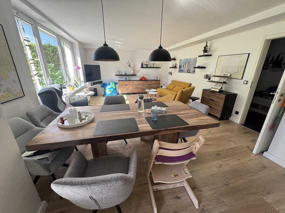 Der 38m2 große Wohn- und Essbereich bildet das Herzstück der Wohnung und verfügt über eine moderne Einbauküche mit einer hellen Fensterfront zum eigenen Garten. Hier finden Sie neben einem hochwertigen Kochfeld auf einer Kochinsel, den Backofen mit Mikrowellenfunktion, Kühl-Gefrierkombination, Geschirrspüler, Wärmeschublade und eine Kaffevollautomaten von Siemens.
